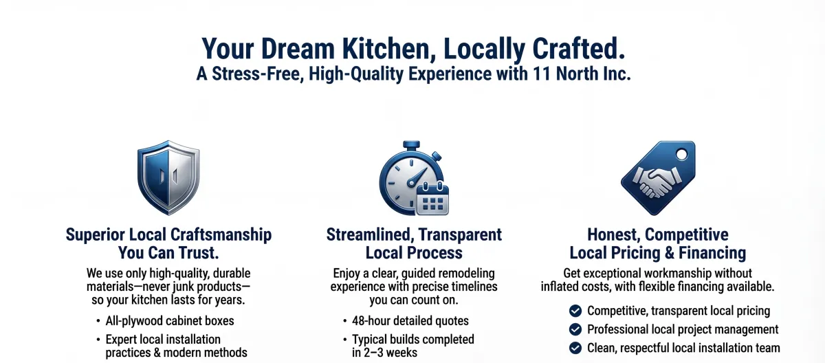 11 North Inc solves these frustrations with reliable service, quality materials, and expert installation--delivering beautiful kitchens without the headaches.